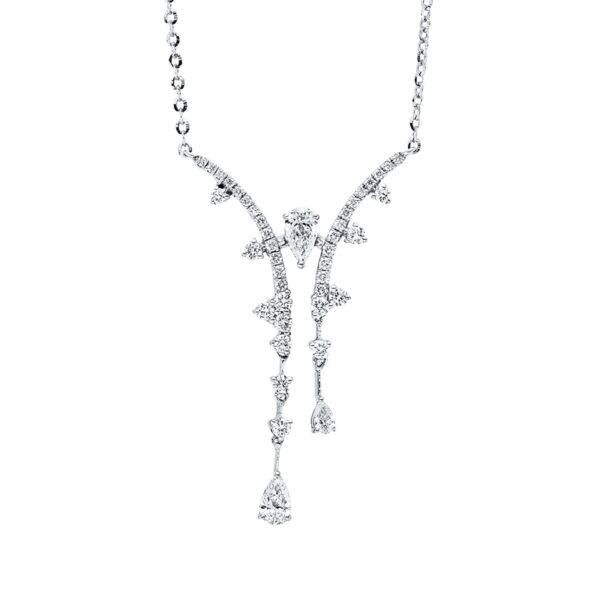 Collier 18 kt WG, mit ZÖ 40,6 cm, 3 Tropfen 0,40 ct, TW-vsi, 39 Brillanten 0,39 ct, TW-si, L:45,7 cm