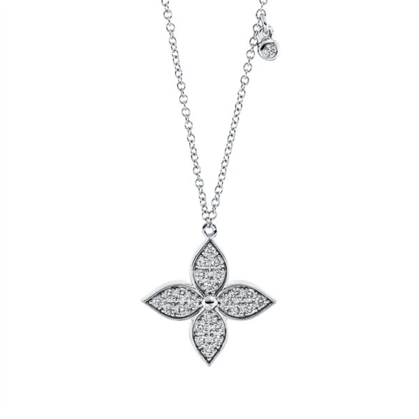 Collier 18 kt WG, mit ZÖ 42 cm, 1 Brill. 0,02 ct, TW-si, 24 Brillanten 0,23 ct, TW-si, L:45,0 cm