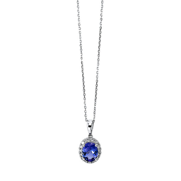 Collier 4er-Krappe 18 kt WG, mit ZÖ 40 cm + 43 cm, 16 Brillanten 0,29 ct, TW-si, 1 Tansanit 1,88 ct blau, L:45,7 cm