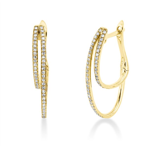 Creolen 18 kt GG, 94 Diamanten 0,29 ct, TW-si, H:25,6 mm, B:13,0 mm, S:3,4 mm