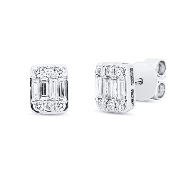 Creolen 18 kt WG, 8 Baguette 0,22 ct, TW-si, 12 Brillanten 0,14 ct, TW-si, H:6,7 mm, B:5,2 mm, S:2,8 mm