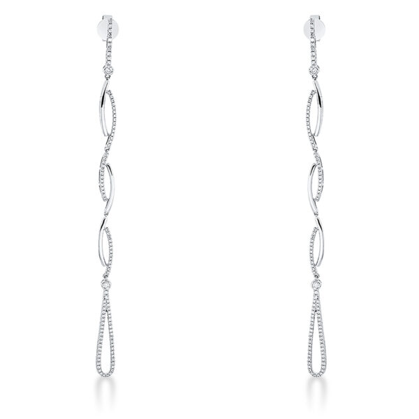 Ohrschmuck 18 kt WG, 2 Brillanten 0,02 ct, TW-si, 4 Brillanten 0,08 ct, TW-si, 192 Brillanten 0,66 ct, TW-si, H:100,0 mm, B:5,0 mm, S:2,0 mm