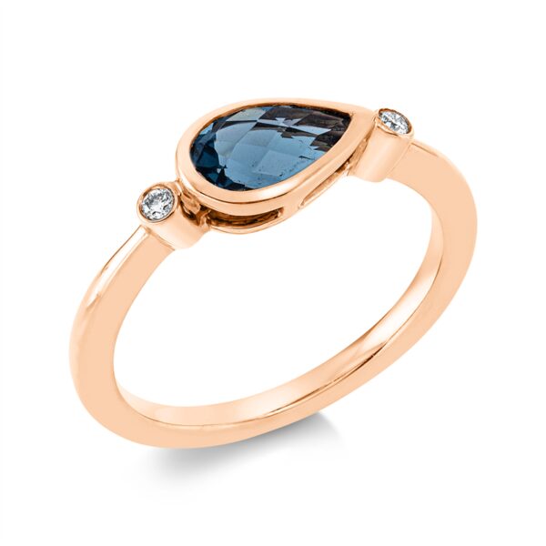 Ring 14 kt RG, 2 Brillanten 0,04 ct, TW-vsi/si, 1 Topas 1,08 ct Lond. blue, Weite:53