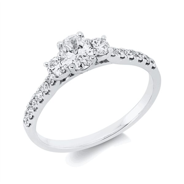 Ring 18 kt WG, 2 Brillanten 0,17 ct, TW-si, 1 Oval 0,38 ct, TW-vsi, 12 Brillanten 0,19 ct, TW-si, Weite:53
