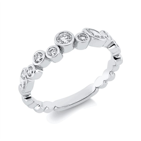 Ring 18 kt WG, 2 Navette 0,12 ct, TW-vsi, 7 Brillanten 0,27 ct, TW-si, Weite:53