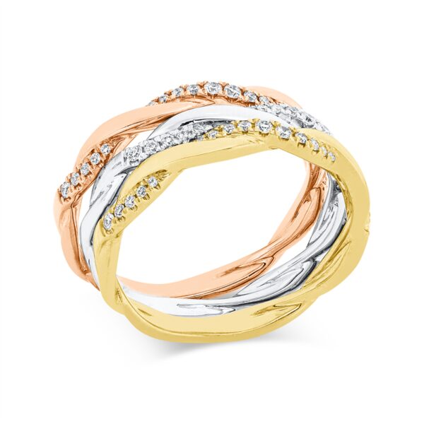 Ring 18 kt WG+GG+RG, 12 Brillanten 0,13 ct, TW-si, 48 Brillanten 0,23 ct, TW-si, Weite:54